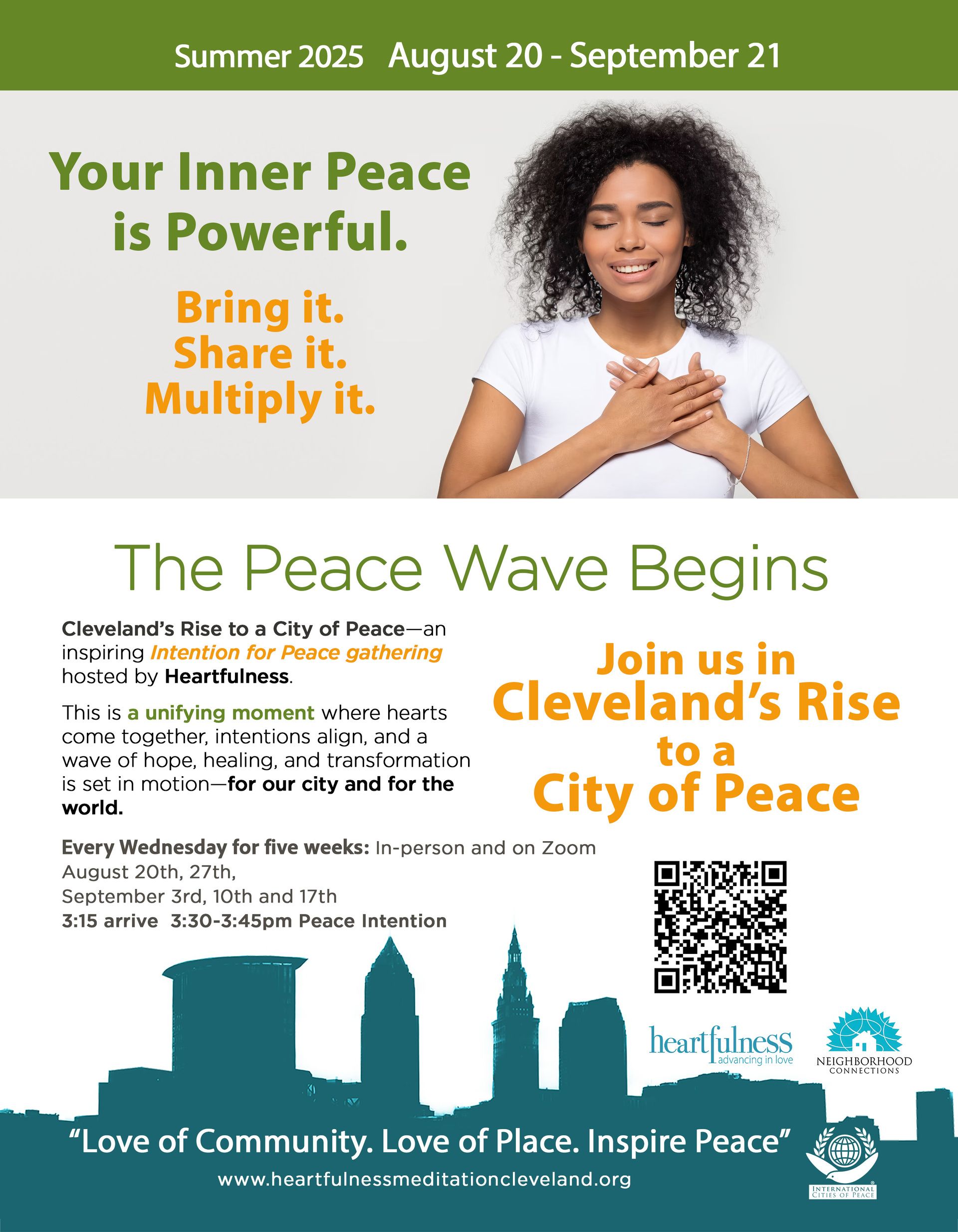 As part of “Cleveland’s Rise to a City of Peace” initiative, the Heartfulness Meditation Center is hosting a series of free community events where we pause, breathe, and set a shared intention for peace.